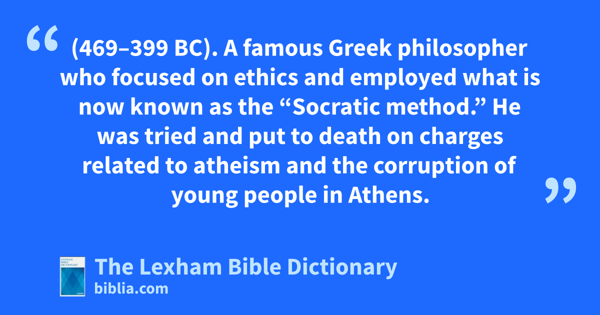 Socrates (469–399 bc). A famous Greek philosopher who focused on ethics and employed what is now known as the “Socratic method.” He was tried and put to death on charges related to atheism and the corruption of young people in Athens.