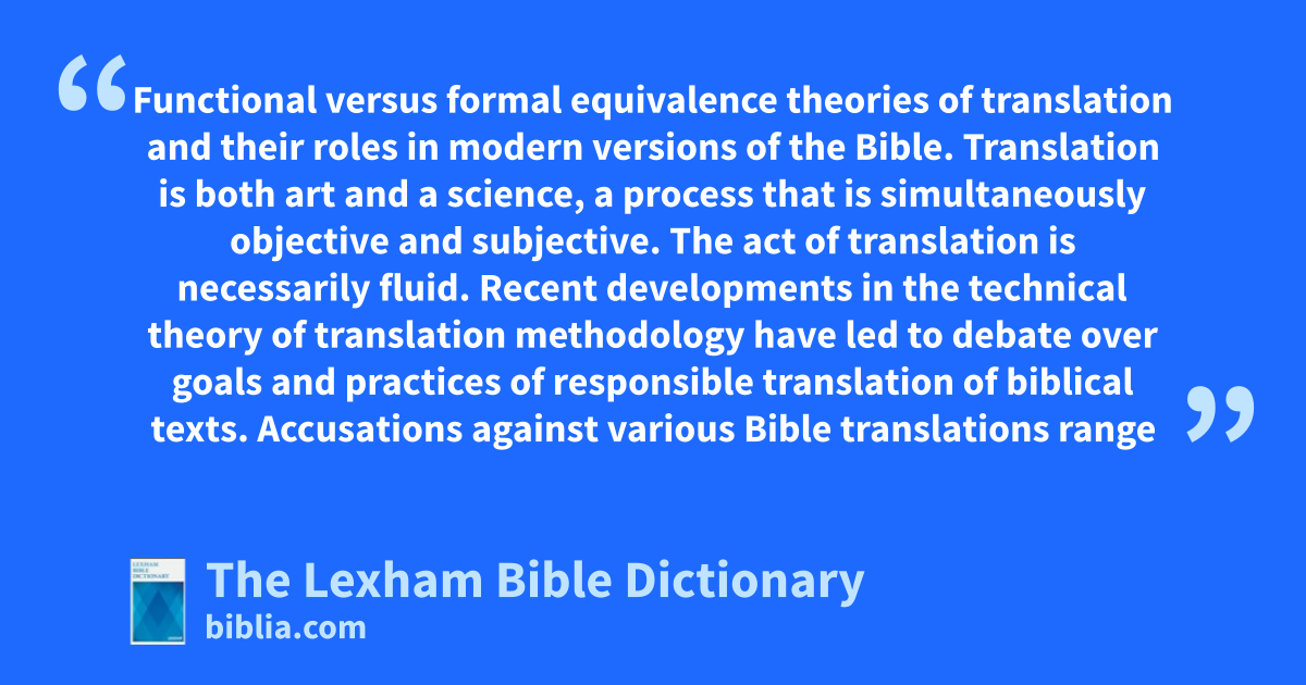 Translation of the Bible, Theories Of Functional versus formal equivalence theories of translation and their roles in modern versions of the Bible.