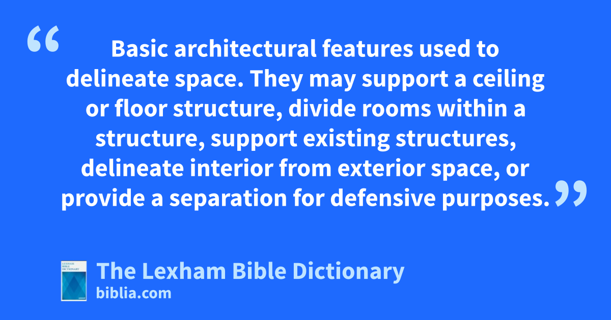 Walls Basic architectural features used to delineate space. They may support a ceiling or floor structure, divide rooms within a structure, support existing structures, delineate interior from exterior space, or provide a separation for defensive purposes.