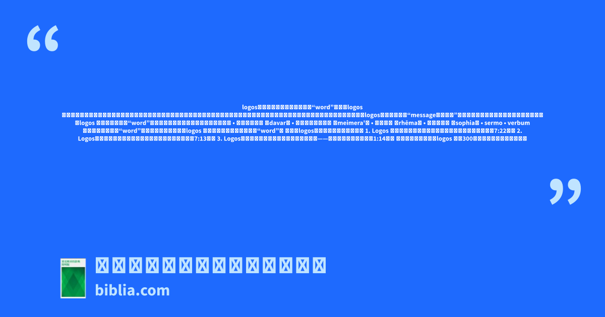 1. Logos 的标准含义是指词语、言语或说话的行为(使徒行传7:22)。