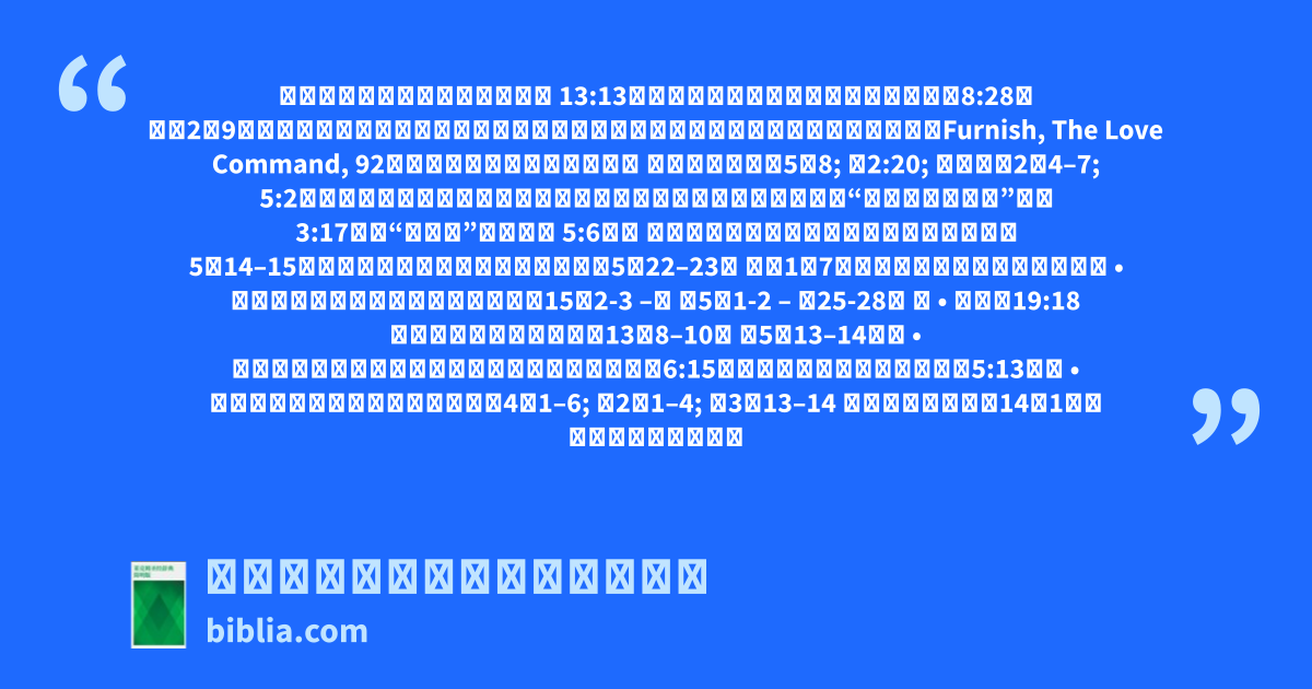 • 他将利19:18 视为所有法律的实现(罗13:8–10; 加5:13–14)。