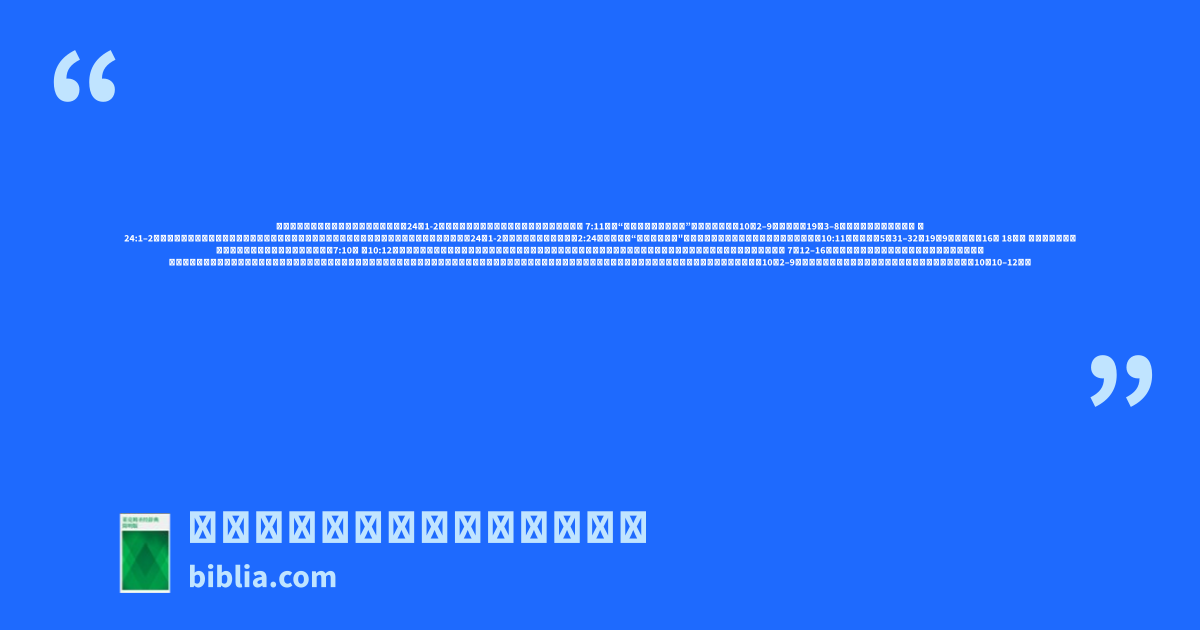 离婚。 耶稣还重新解释了允许离婚的律法(申命记24:1-2)。保罗是最早记录此一教导的新约作者(林前 7:11):“丈夫也不可离弃妻子”。根据马可福音10:2–9和马太福音19:3–8,耶稣在与一些内部持对 申 24:1–2有不同解释的法利赛人争辩律法时,讲述了这个教导。但是,对于耶稣来说,这个教导的先例不是申命记24:1-2,而是上帝更早在创世记2:24中的宣告:“二人成为一体"。因此,离婚和再婚会导致犯奸淫(马可福音10:11;马太福音5:31–32;19:9;路加福音16: 18)。
