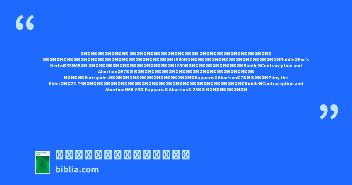 堕胎的实行已经有数千年历史。 纵观历史,它是由草药的化学成分所诱导的。 在各种文化都能发现对避孕药和堕胎药的使用。 一个古老的苏美尔人铭文列出了疑似是引起流产的处方,而另一个最早可追溯到公元前1500年的埃及纸莎草纸,𥚃面的内容也提到了用于流产的化学物质(Riddle,Eve’s Herbs,35,68)。 目前发现最早的,来自埃及的医学著作,可追溯到公元前1850年,其内容则包含了防止受孕的处方(Riddle,Contraception and Abortion,67)。