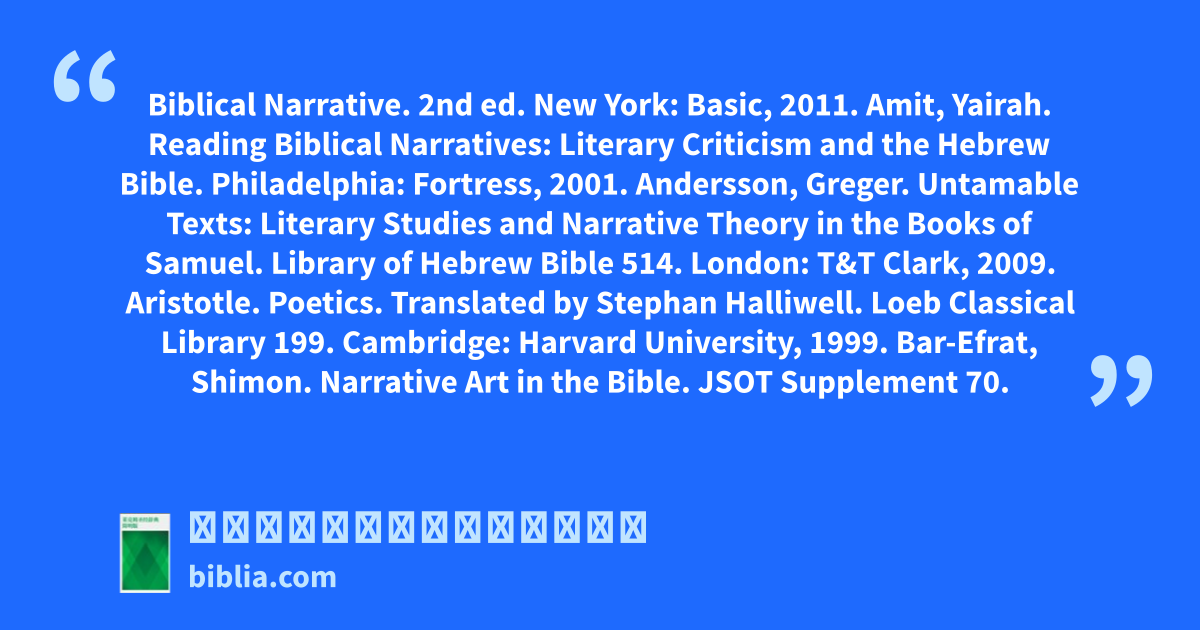 Bar-Efrat, Shimon. Narrative Art in the Bible. JSOT Supplement 70. Sheffield: Almond, 1989.