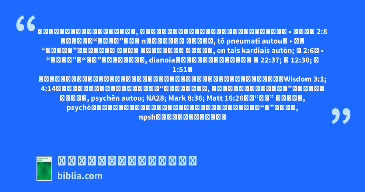 • 马可福音 2:8 谈到耶稣在他“心里知道”(τῷ πνεύματι αὐτοῦ, tō pneumati autou)