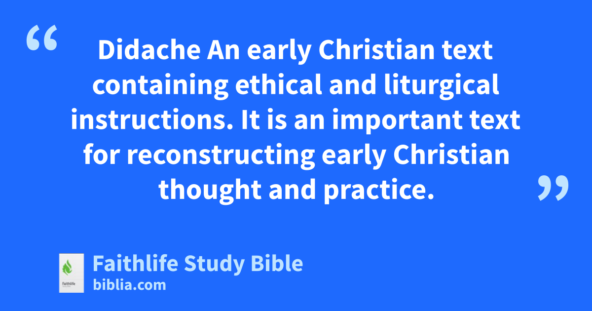 Didache An early Christian text containing ethical and liturgical instructions. It is an important text for reconstructing early Christian thought and practice.