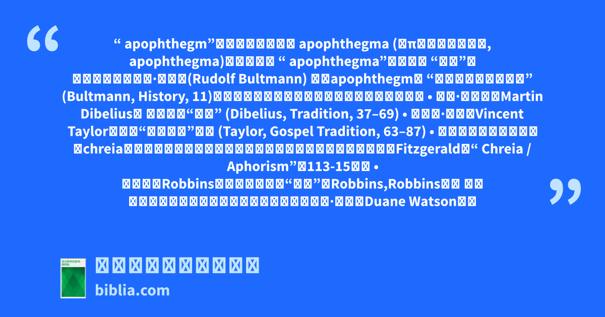 “ apophthegm”一字是來自希臘文 apophthegma (απόφθεγμα, apophthegma)的英文音譯 “ apophthegma”,意思是 “短語”。 形式批評家魯道夫·布特曼(Rudolf Bultmann) 定義apophthegm為 “在短暫處境中的話語” (Bultmann, History, 11)。新約學者經常用其他術語來表達耶穌的話語: