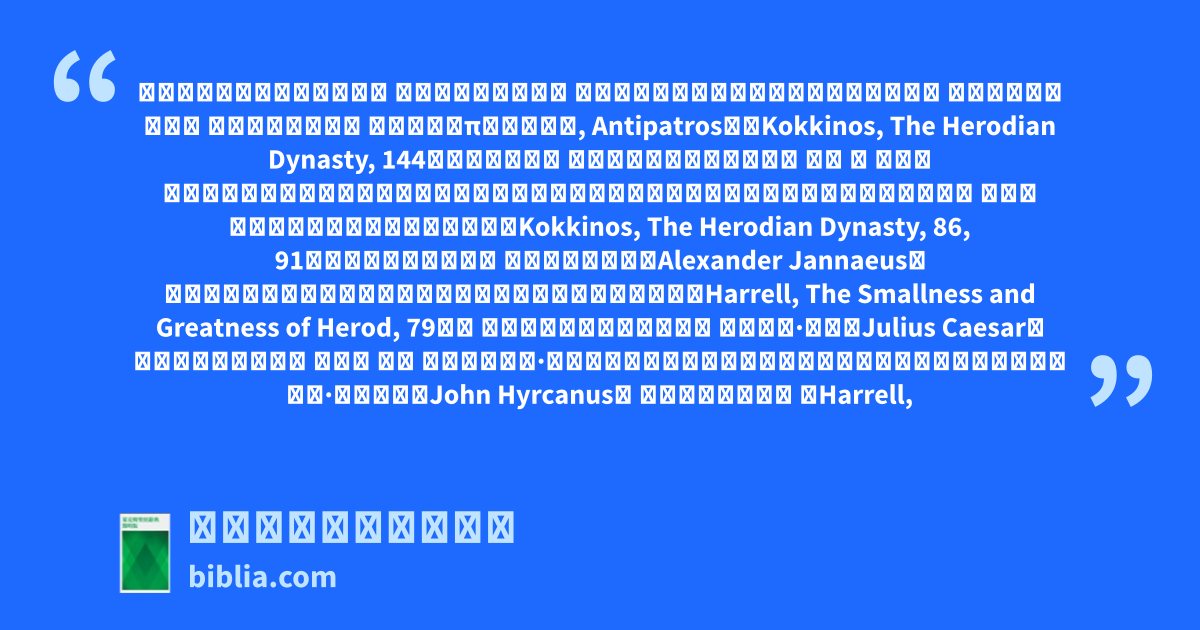 希律王朝統治者的統治時期從 公元前一世紀持續到 公元一世紀。家族史可以追溯九代,一直到 公元前二世紀 希律王 的祖父安提帕一世 (Ἀντίπατρος, Antipatros)(Kokkinos, The Herodian Dynasty, 144)。他們起源於 以土買,該地區包括古老的 以東 和 腓尼基 海岸,他們的人民被征服他們的哈斯摩尼人強行改變他們的信仰。科金諾斯認為,希律家族來自 希臘化 的以土買西部地區,即前腓尼基(Kokkinos, The Herodian Dynasty, 86, 91)。當哈斯摩尼家族的 亞歷山大約拿斯(Alexander Jannaeus) 征服以土買時,他任命希律的祖父安提帕一世為該地區的省長(Harrell, The Smallness and Greatness of Herod, 79)。