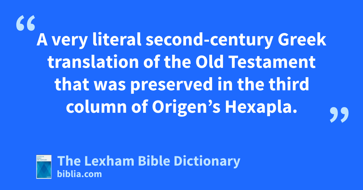 Aquila’s Version A very literal second-century Greek translation of the Old Testament that was preserved in the third column of Origen’s Hexapla.