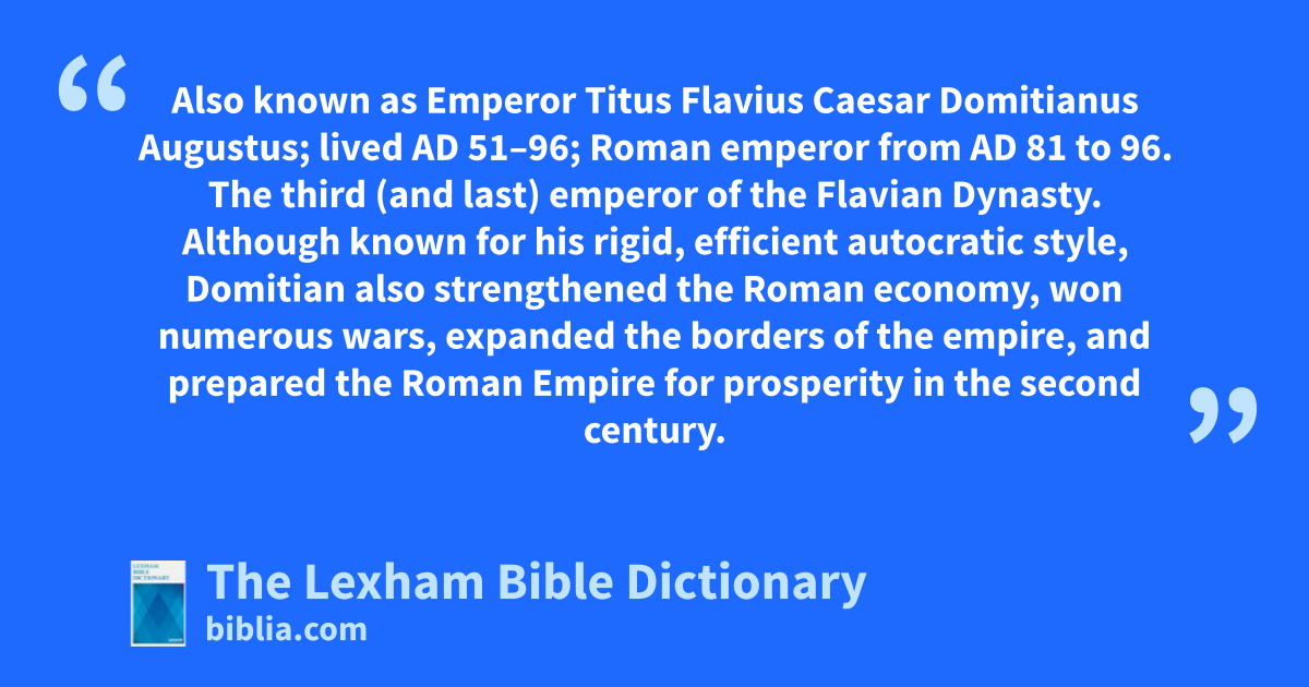 Domitian, Emperor Also known as Emperor Titus Flavius Caesar Domitianus Augustus; lived ad 51–96; Roman emperor from ad 81 to 96. The third (and last) emperor of the Flavian Dynasty. Although known for his rigid, efficient autocratic style, Domitian also strengthened the Roman economy, won numerous wars, expanded the borders of the empire, and prepared the Roman Empire for prosperity in the second century.