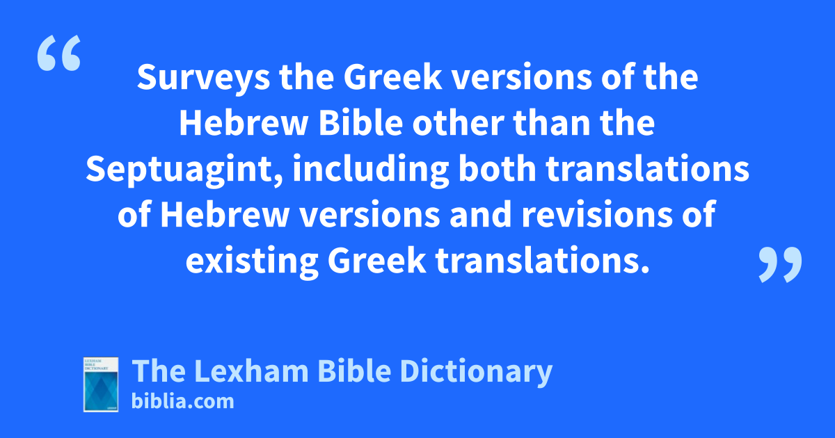 Greek Versions of the Hebrew Bible Surveys the Greek versions of the Hebrew Bible other than the Septuagint, including both translations of Hebrew versions and revisions of existing Greek translations.