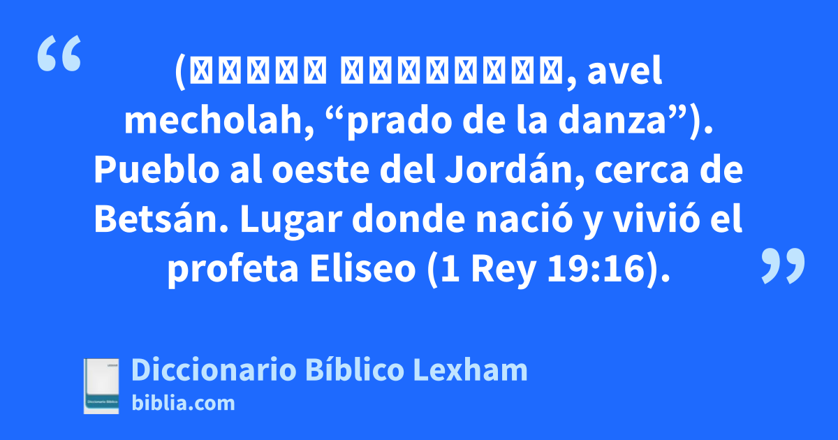 Abel-mehola (אָבֵל מְחוֹלָה, avel mecholah, “prado de la danza”). Pueblo al oeste del Jordán, cerca de Betsán. Lugar donde nació y vivió el profeta Eliseo (1 Rey 19:16).