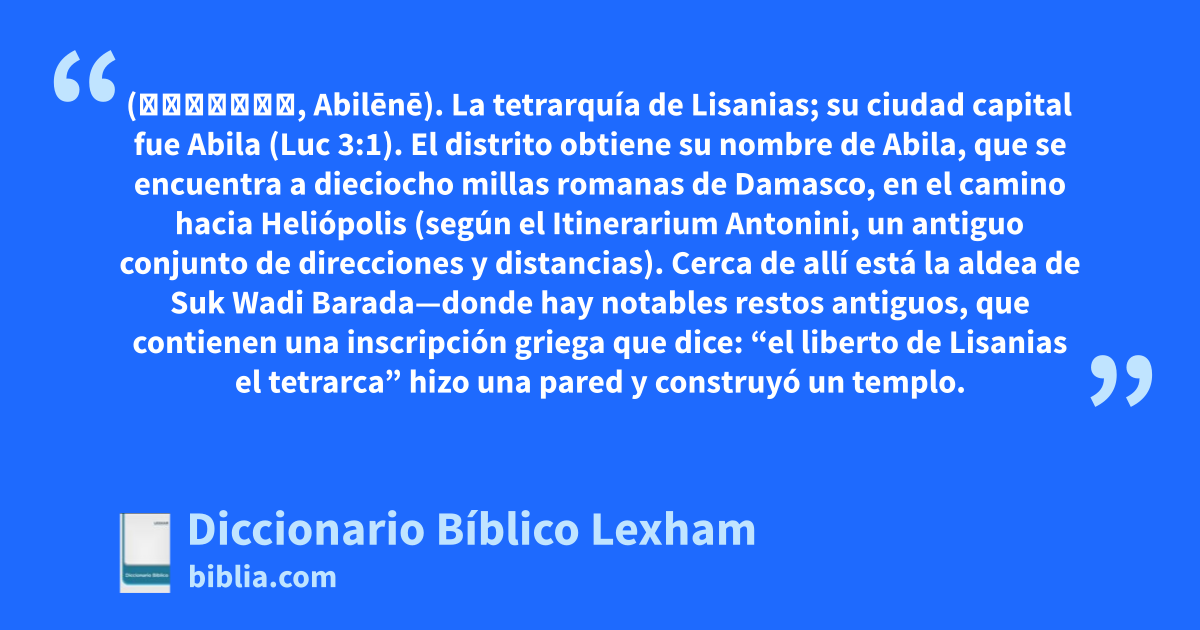 Abilinia (Ἀβιληνή, Abilēnē). La tetrarquía de Lisanias; su ciudad capital fue Abila (Luc 3:1).