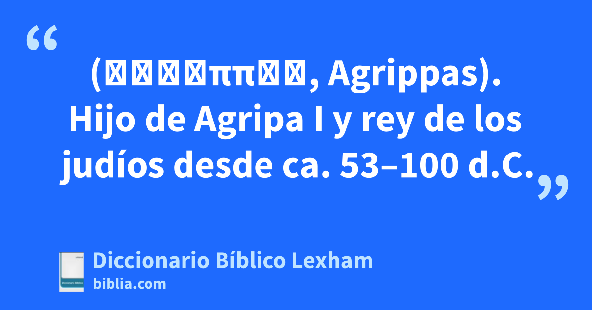 Agripa (Ἀγρίππας, Agrippas). Hijo de Agripa I y rey de los judíos desde ca. 53–100 d.C.