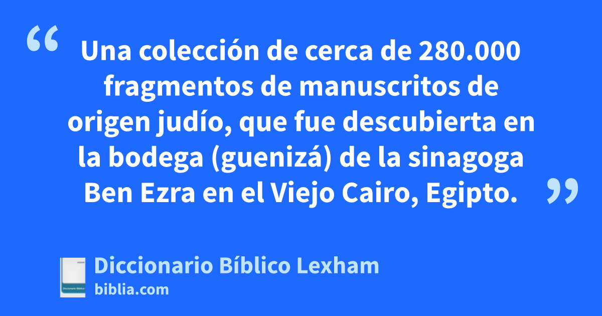 Genizá de El Cairo Una colección de cerca de 280.000 fragmentos de manuscritos de origen judío, que fue descubierta en la bodega (guenizá) de la sinagoga Ben Ezra en el Viejo Cairo, Egipto.