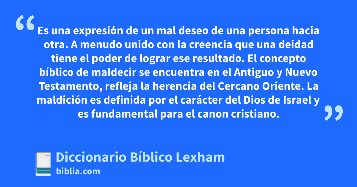 Maldición Es una expresión de un mal deseo de una persona hacia otra. A menudo unido con la creencia que una deidad tiene el poder de lograr ese resultado. El concepto bíblico de maldecir se encuentra en el Antiguo y Nuevo Testamento, refleja la herencia del Cercano Oriente. La maldición es definida por el carácter del Dios de Israel y es fundamental para el canon cristiano.