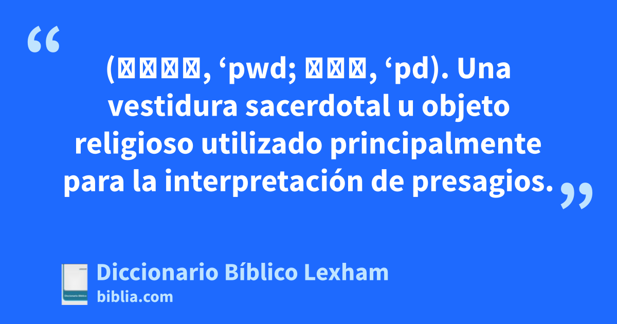 Efod (אפוד, ‘pwd; אפד, ‘pd). Una vestidura sacerdotal u objeto religioso utilizado principalmente para la interpretación de presagios.