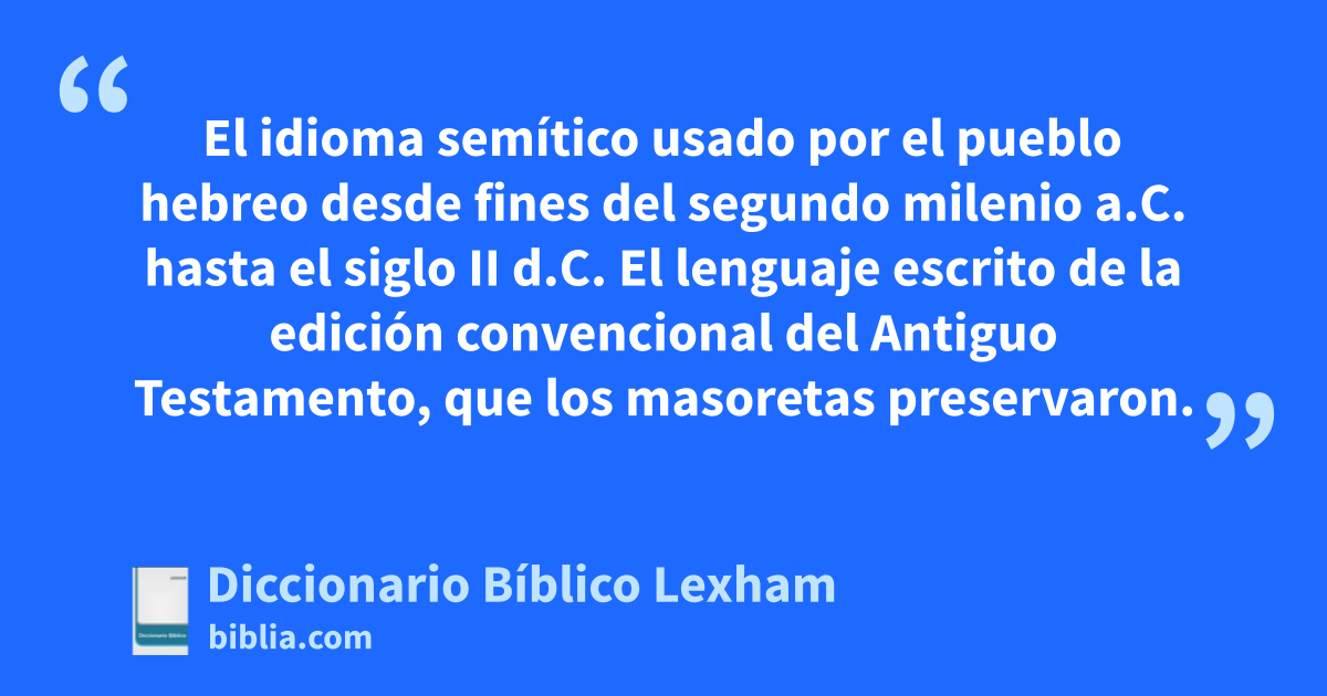 Hebreo, Idioma El idioma semítico usado por el pueblo hebreo desde fines del segundo milenio a.C. hasta el siglo II d.C. El lenguaje escrito de la edición convencional del Antiguo Testamento, que los masoretas preservaron.