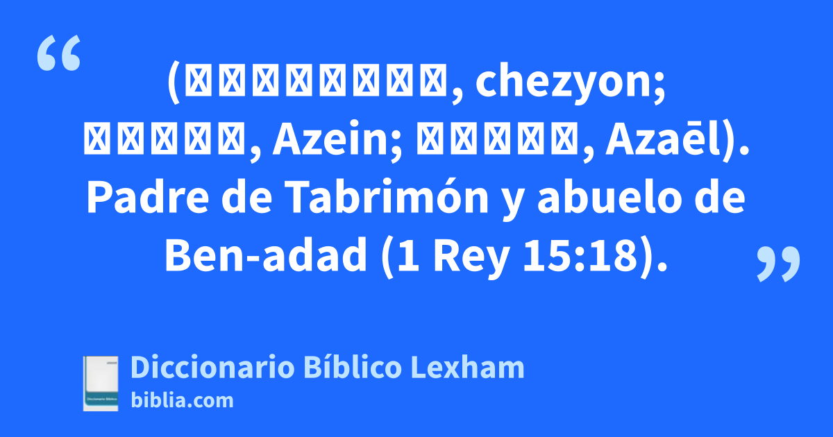 Hezión (חֶזְיוֹן, chezyon; Ἀζείν, Azein; Ἀζαήλ, Azaēl). Padre de Tabrimón y abuelo de Ben-adad (1 Rey 15:18).