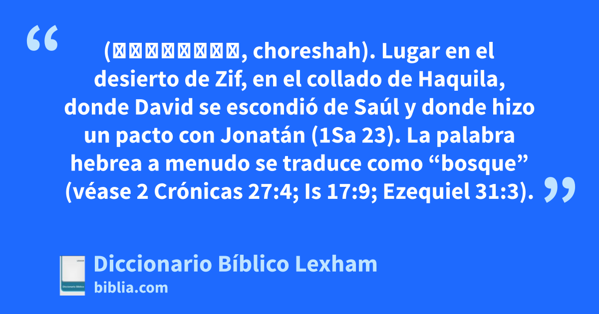 Hores (חֹרְשָׁה, choreshah). Lugar en el desierto de Zif, en el collado de Haquila, donde David se escondió de Saúl y donde hizo un pacto con Jonatán (1Sa 23). La palabra hebrea a menudo se traduce como “bosque” (véase 2 Crónicas 27:4; Is 17:9; Ezequiel 31:3).