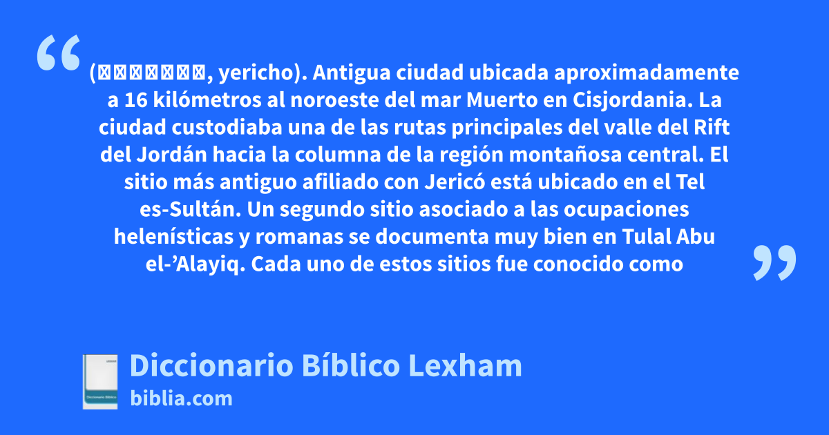 Ciudad de las palmeras (יְרִחוֹ, yericho). Antigua ciudad ubicada aproximadamente a 16 kilómetros al noroeste del mar Muerto en Cisjordania. La ciudad custodiaba una de las rutas principales del valle del Rift del Jordán hacia la columna de la región montañosa central.