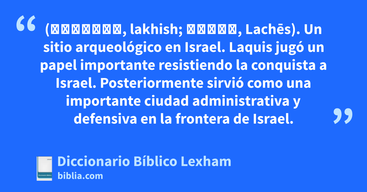 Laquis (לָכִישׁ, lakhish; Λαχης, Lachēs). Un sitio arqueológico en Israel. Laquis jugó un papel importante resistiendo la conquista a Israel. Posteriormente sirvió como una importante ciudad administrativa y defensiva en la frontera de Israel.