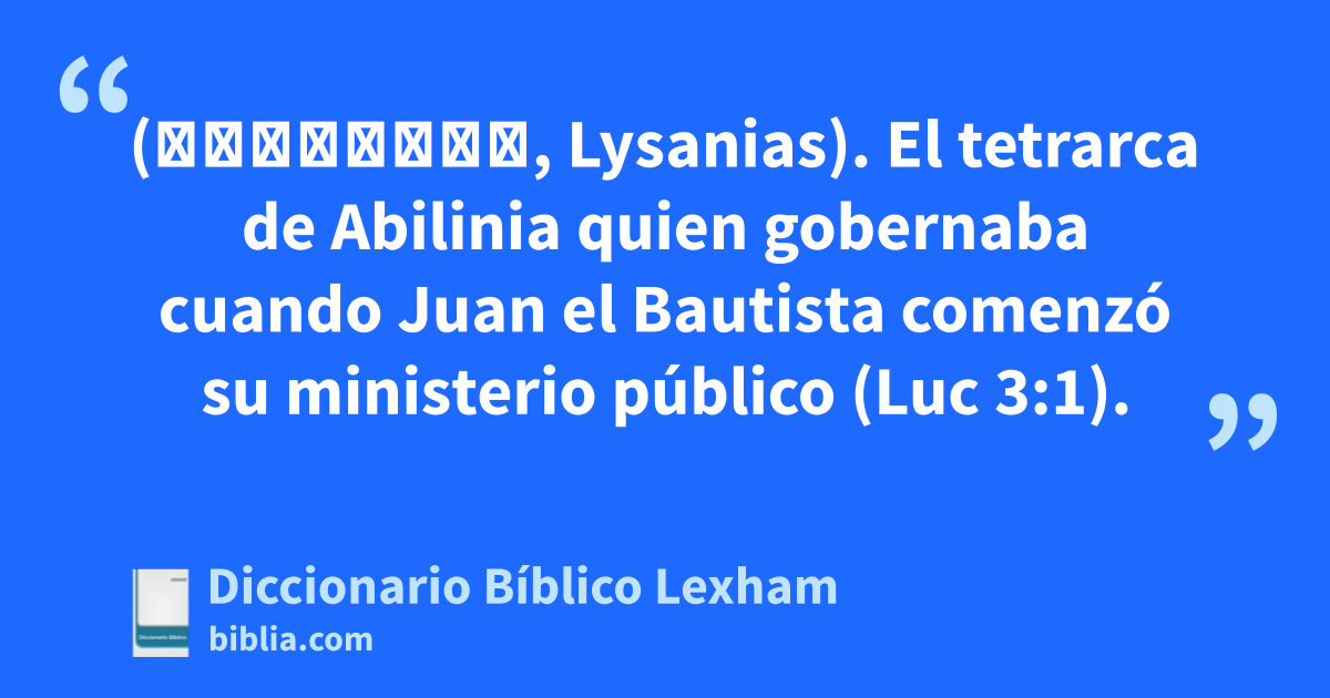 Lisanias (Λυσανίας, Lysanias). El tetrarca de Abilinia quien gobernaba cuando Juan el Bautista comenzó su ministerio público (Luc 3:1).