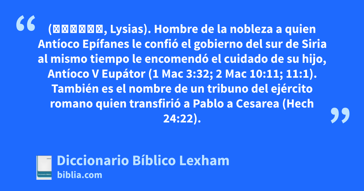 Lisias (Λυσίας, Lysias). Hombre de la nobleza a quien Antíoco Epífanes le confió el gobierno del sur de Siria al mismo tiempo le encomendó el cuidado de su hijo, Antíoco V Eupátor (1 Mac 3:32; 2 Mac 10:11; 11:1). También es el nombre de un tribuno del ejército romano quien transfirió a Pablo a Cesarea (Hech 24:22).