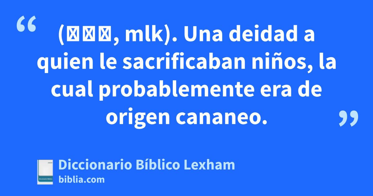 Milcom (מלך, mlk). Una deidad a quien le sacrificaban niños, la cual probablemente era de origen cananeo.