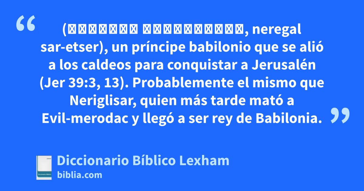Nergal-Sarezer (נֵרְגַל שַׂר־אֶצֶר, neregal sar-etser), un príncipe babilonio que se alió a los caldeos para conquistar a Jerusalén (Jer 39:3, 13). Probablemente el mismo que Neriglisar, quien más tarde mató a Evil-merodac y llegó a ser rey de Babilonia.