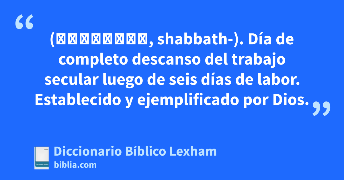 Día de reposo (שַׁבַּת־, shabbath-). Día de completo descanso del trabajo secular luego de seis días de labor. Establecido y ejemplificado por Dios.