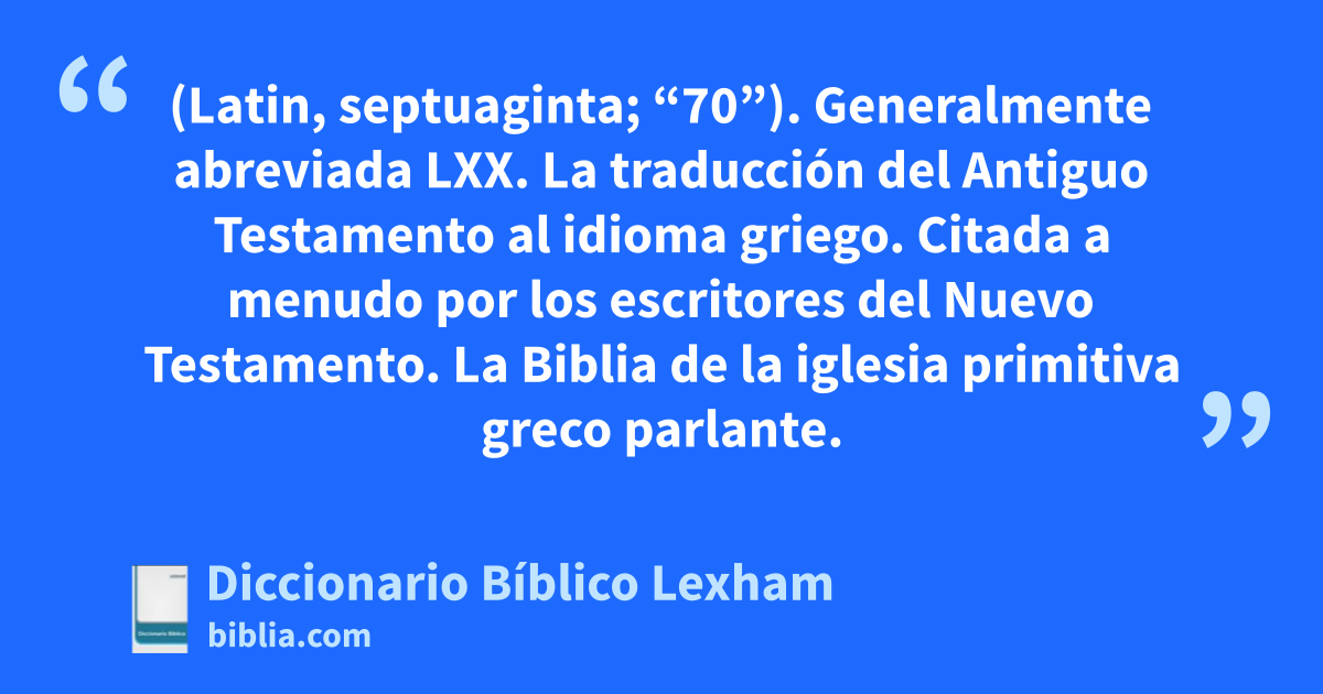 Septuaginta (Latin, septuaginta; “70”). Generalmente abreviada LXX. La traducción del Antiguo Testamento al idioma griego. Citada a menudo por los escritores del Nuevo Testamento. La Biblia de la iglesia primitiva greco parlante.