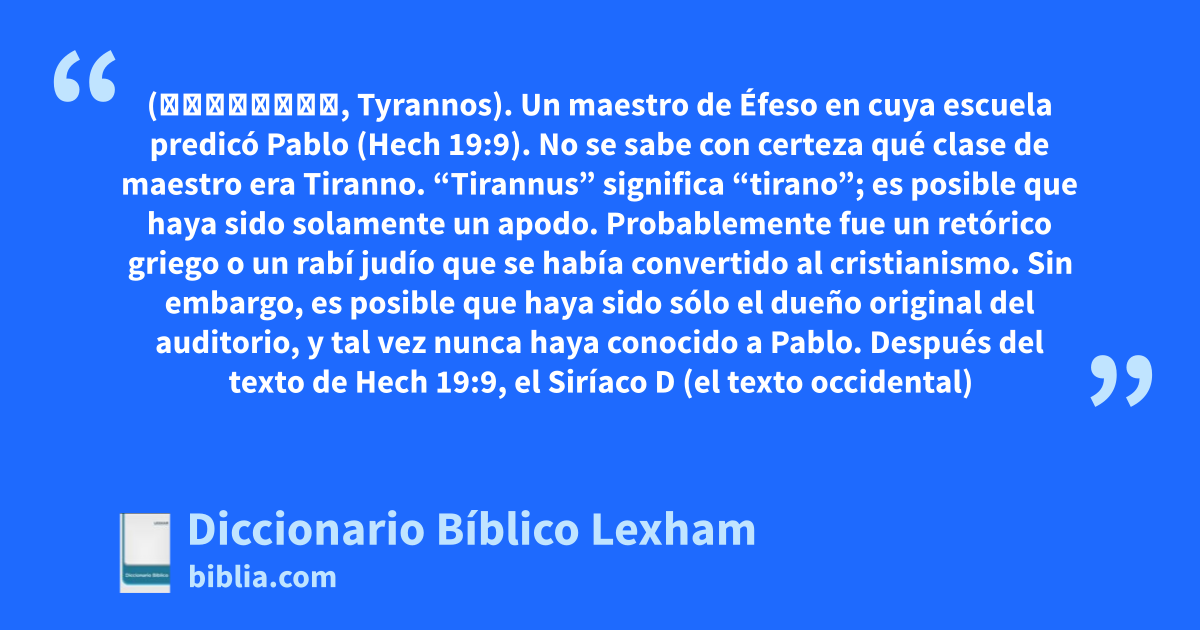 Tiranno (Τύραννος, Tyrannos). Un maestro de Éfeso en cuya escuela predicó Pablo (Hech 19:9).