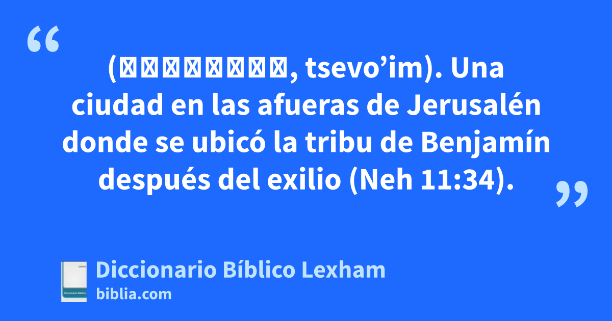 Zeboim, valle (צְבֹעִים, tsevo’im). Una ciudad en las afueras de Jerusalén donde se ubicó la tribu de Benjamín después del exilio (Neh 11:34).
