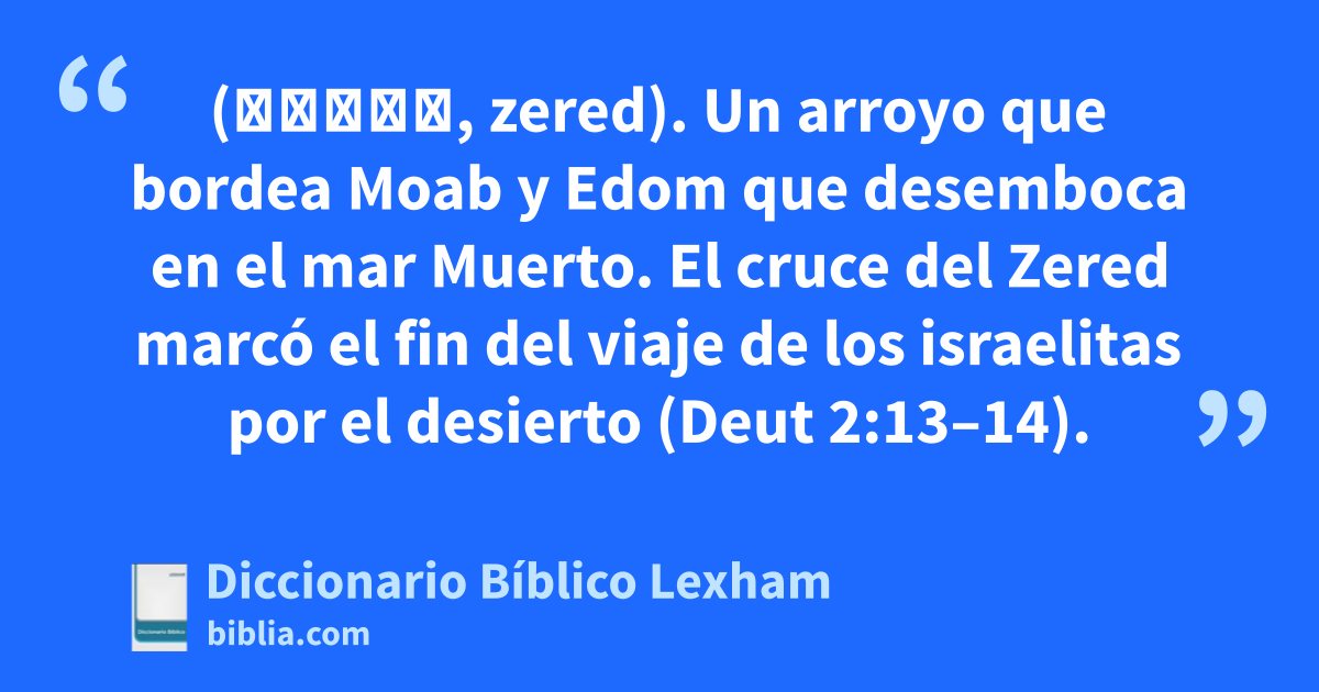 Zered, Arroyo de (זֶרֶד, zered). Un arroyo que bordea Moab y Edom que desemboca en el mar Muerto. El cruce del Zered marcó el fin del viaje de los israelitas por el desierto (Deut 2:13–14).