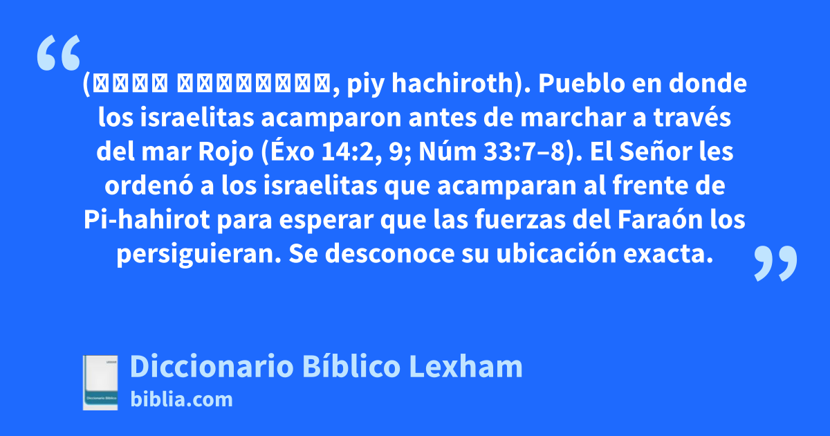 El Señor les ordenó a los israelitas que acamparan al frente de Pi-hahirot para esperar que las fuerzas del Faraón los persiguieran. Se desconoce su ubicación exacta.