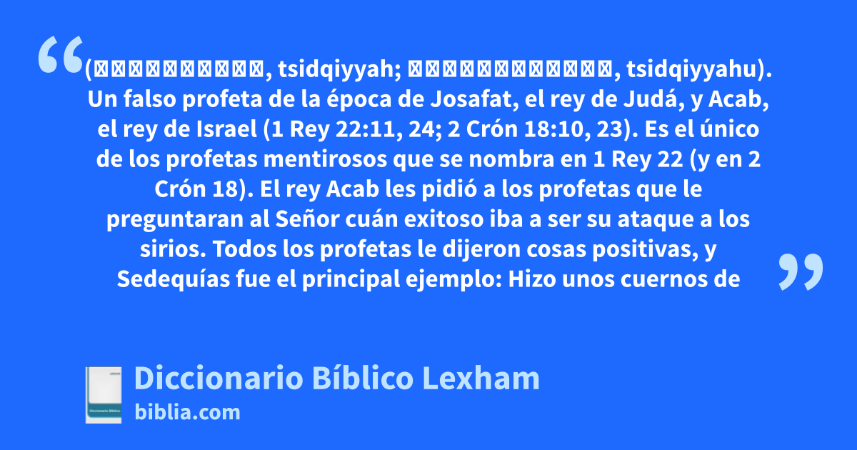 Es el único de los profetas mentirosos que se nombra en 1 Rey 22 (y en 2 Crón 18). El rey Acab les pidió a los profetas que le preguntaran al Señor cuán exitoso iba a ser su ataque a los sirios. Todos los profetas le dijeron cosas positivas, y Sedequías fue el principal ejemplo: Hizo unos cuernos de hierro y anunció: “Así ha dicho Jehová: Con estos acornearás a los sirios hasta acabarlos”.