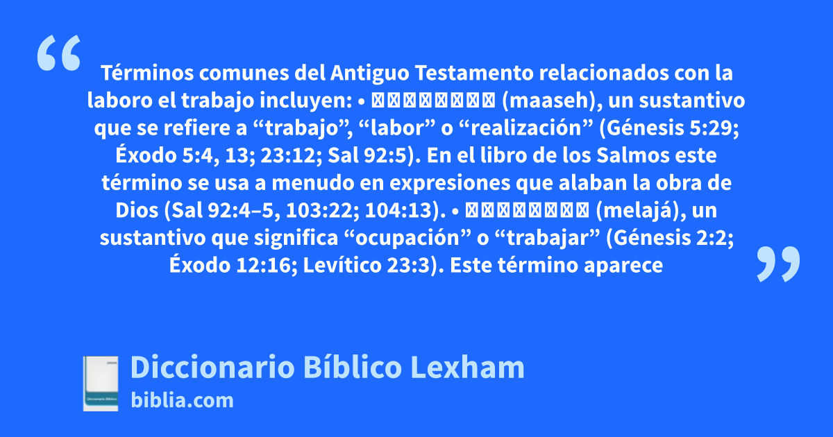 Términos comunes del Antiguo Testamento relacionados con la laboro el trabajo incluyen: