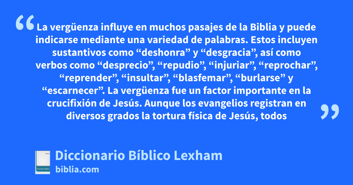 La vergüenza influye en muchos pasajes de la Biblia y puede indicarse mediante una variedad de palabras. Estos incluyen sustantivos como “deshonra” y “desgracia”, así como verbos como “desprecio”, “repudio”, “injuriar”, “reprochar”, “reprender”, “insultar”, “blasfemar”, “burlarse” y “escarnecer”.