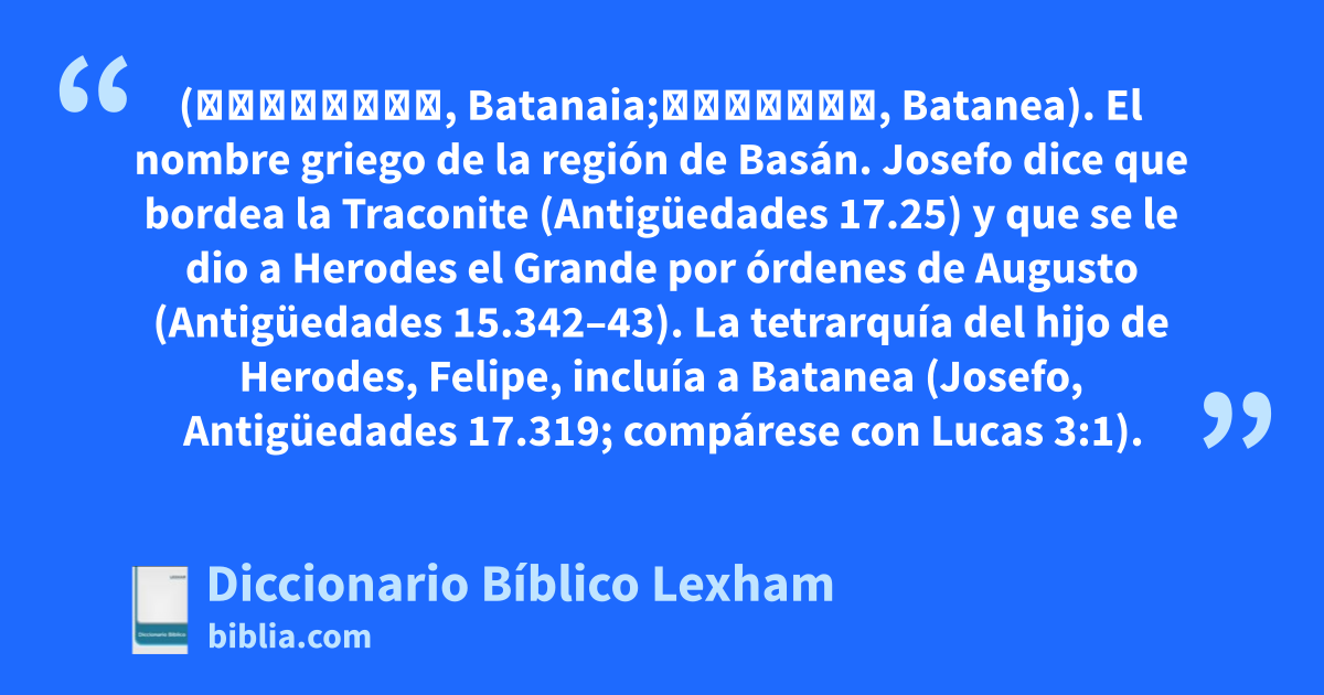 Batanea (Βαταναία, Batanaia;Βατανέα, Batanea). El nombre griego de la región de Basán. Josefo dice que bordea la Traconite (Antigüedades 17.25) y que se le dio a Herodes el Grande por órdenes de Augusto (Antigüedades 15.342–43). La tetrarquía del hijo de Herodes, Felipe, incluía a Batanea (Josefo, Antigüedades 17.319; compárese con Lucas 3:1).