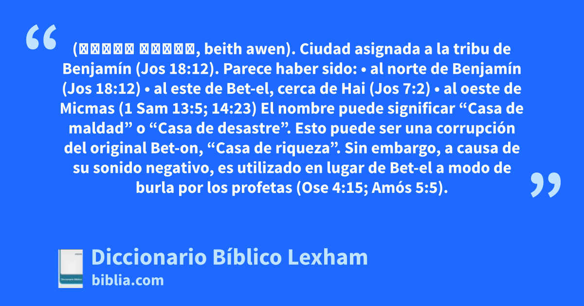 Bet-avén (בֵּית אָוֶן, beith awen). Ciudad asignada a la tribu de Benjamín (Jos 18:12).