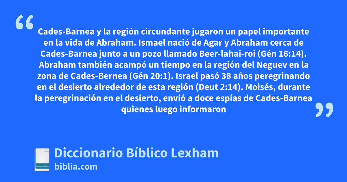 Cades-Barnea y la región circundante jugaron un papel importante en la vida de Abraham. Ismael nació de Agar y Abraham cerca de Cades-Barnea junto a un pozo llamado Beer-lahai-roi (Gén 16:14). Abraham también acampó un tiempo en la región del Neguev en la zona de Cades-Bernea (Gén 20:1).
