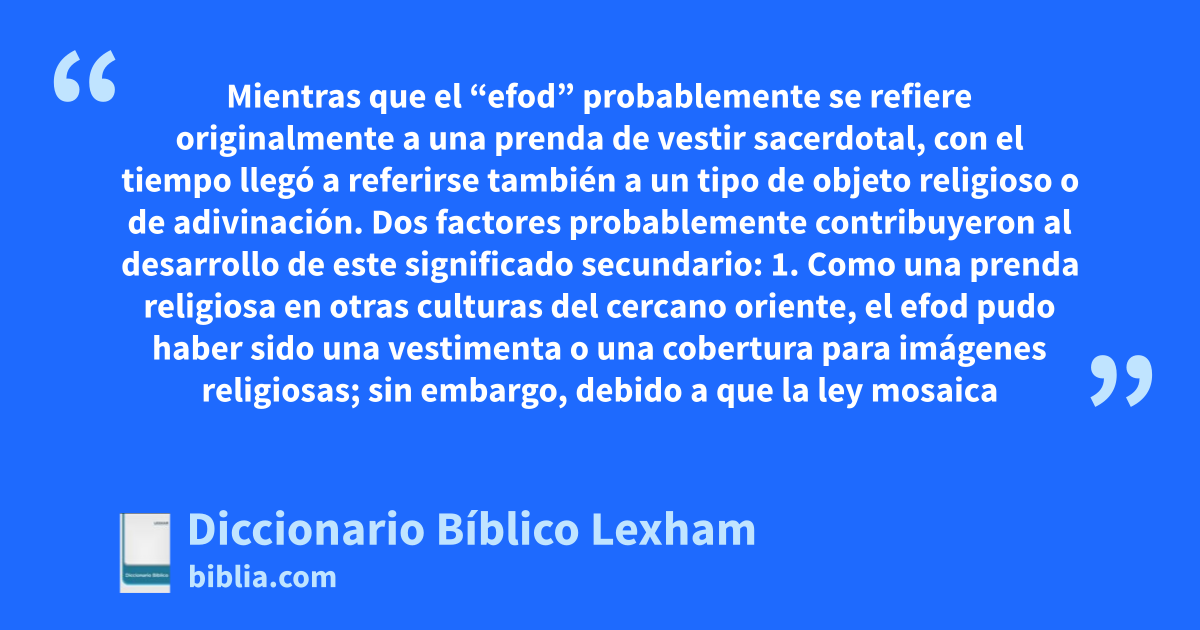 Mientras que el “efod” probablemente se refiere originalmente a una prenda de vestir sacerdotal, con el tiempo llegó a referirse también a un tipo de objeto religioso o de adivinación. Dos factores probablemente contribuyeron al desarrollo de este significado secundario: