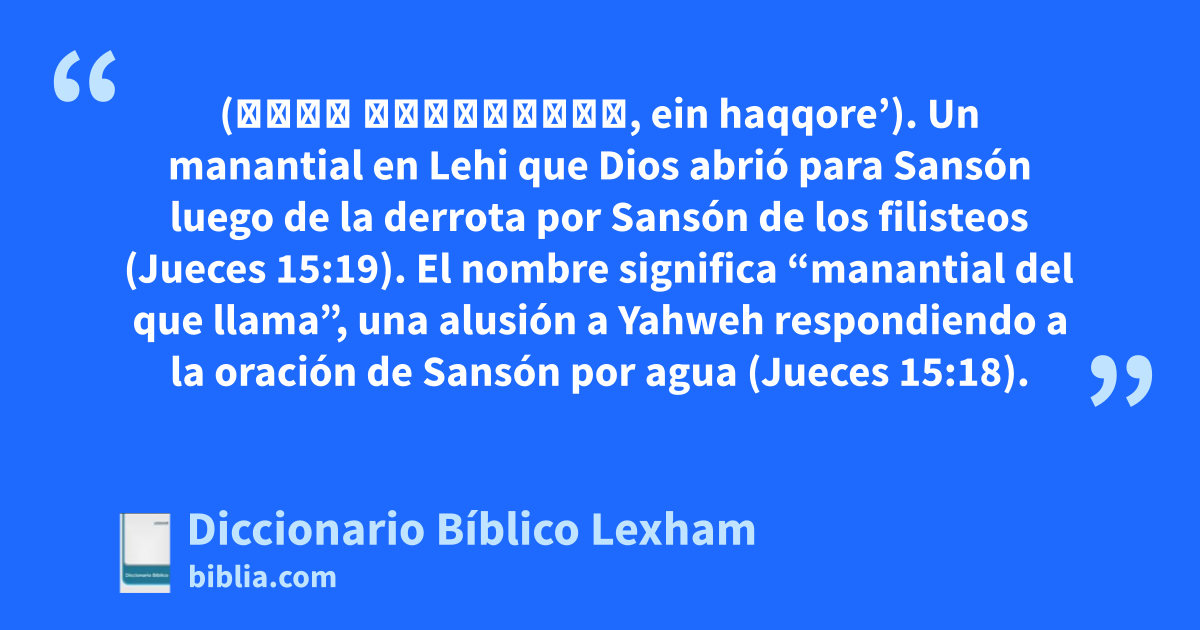 En-Hacore (עֵין הַקּוֹרֵא, ein haqqore’). Un manantial en Lehi que Dios abrió para Sansón luego de la derrota por Sansón de los filisteos (Jueces 15:19). El nombre significa “manantial del que llama”, una alusión a Yahweh respondiendo a la oración de Sansón por agua (Jueces 15:18).