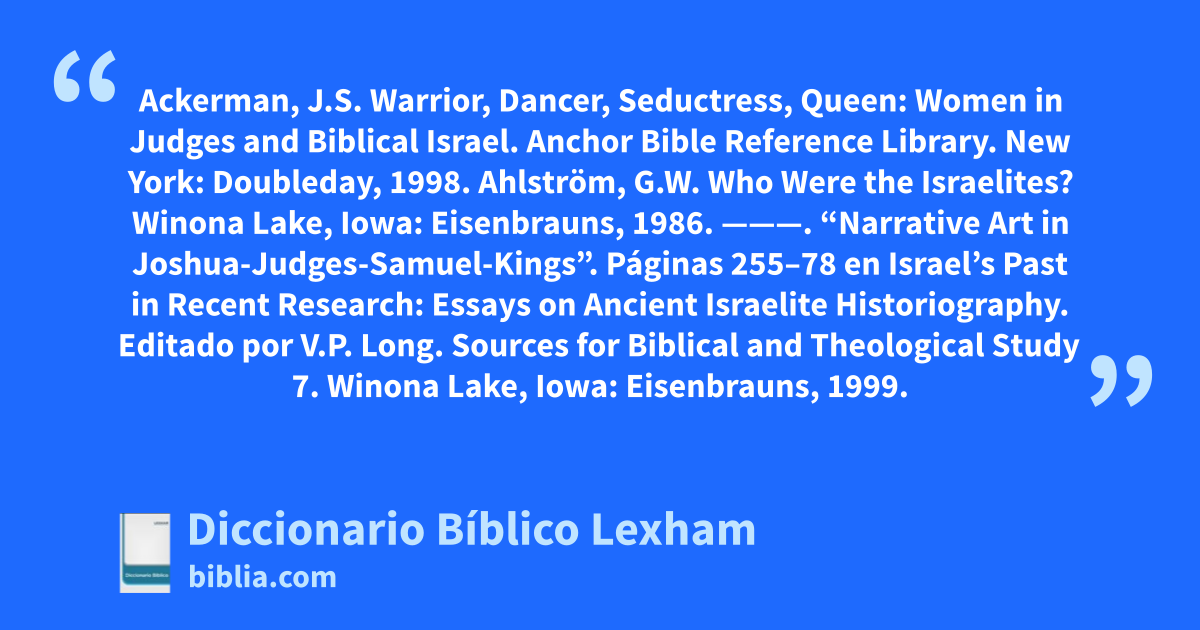 Chisholm, R.B. “The Role of Women in the Rhetorical Strategy of the Book of Judges”. Páginas 34–49 en Integrity of Heart, Skillfulness of Hands. Editado por C.H. Dyer y R.B. Zuck. Grand Rapids: Baker, 1994.
