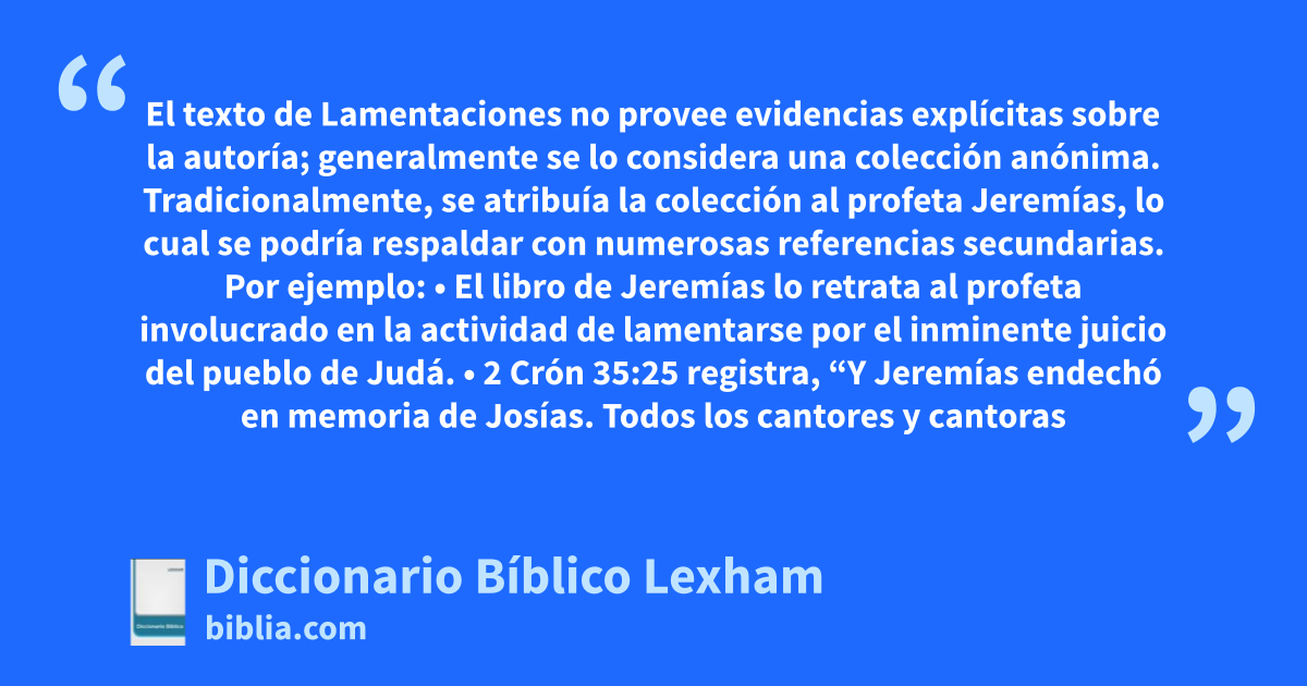 • 2 Crón 35:25 registra, “Y Jeremías endechó en memoria de Josías. Todos los cantores y cantoras recitan esas lamentaciones sobre Josías hasta hoy; y las tomaron por norma para endechar en Israel, las cuales están escritas en el libro de Lamentos”.