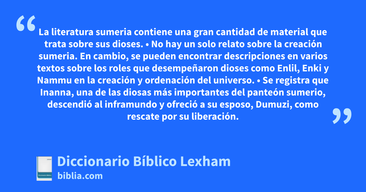 • No hay un solo relato sobre la creación sumeria. En cambio, se pueden encontrar descripciones en varios textos sobre los roles que desempeñaron dioses como Enlil, Enki y Nammu en la creación y ordenación del universo.