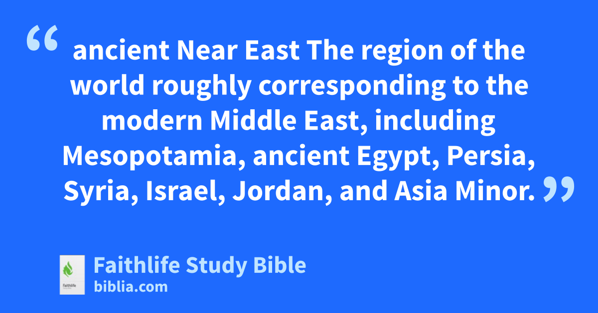 ancient Near East The region of the world roughly corresponding to the modern Middle East, including Mesopotamia, ancient Egypt, Persia, Syria, Israel, Jordan, and Asia Minor.