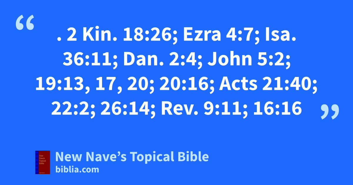 ARAMAIC LANGUAGE. 2 Kin. 18:26; Ezra 4:7; Isa. 36:11; Dan. 2:4; John 5:2; 19:13, 17, 20; 20:16; Acts 21:40; 22:2; 26:14; Rev. 9:11; 16:16