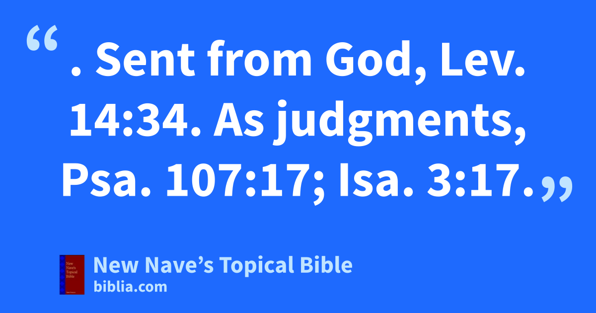 DISEASE. Sent from God, Lev. 14:34. As judgments, Psa. 107:17; Isa. 3:17.